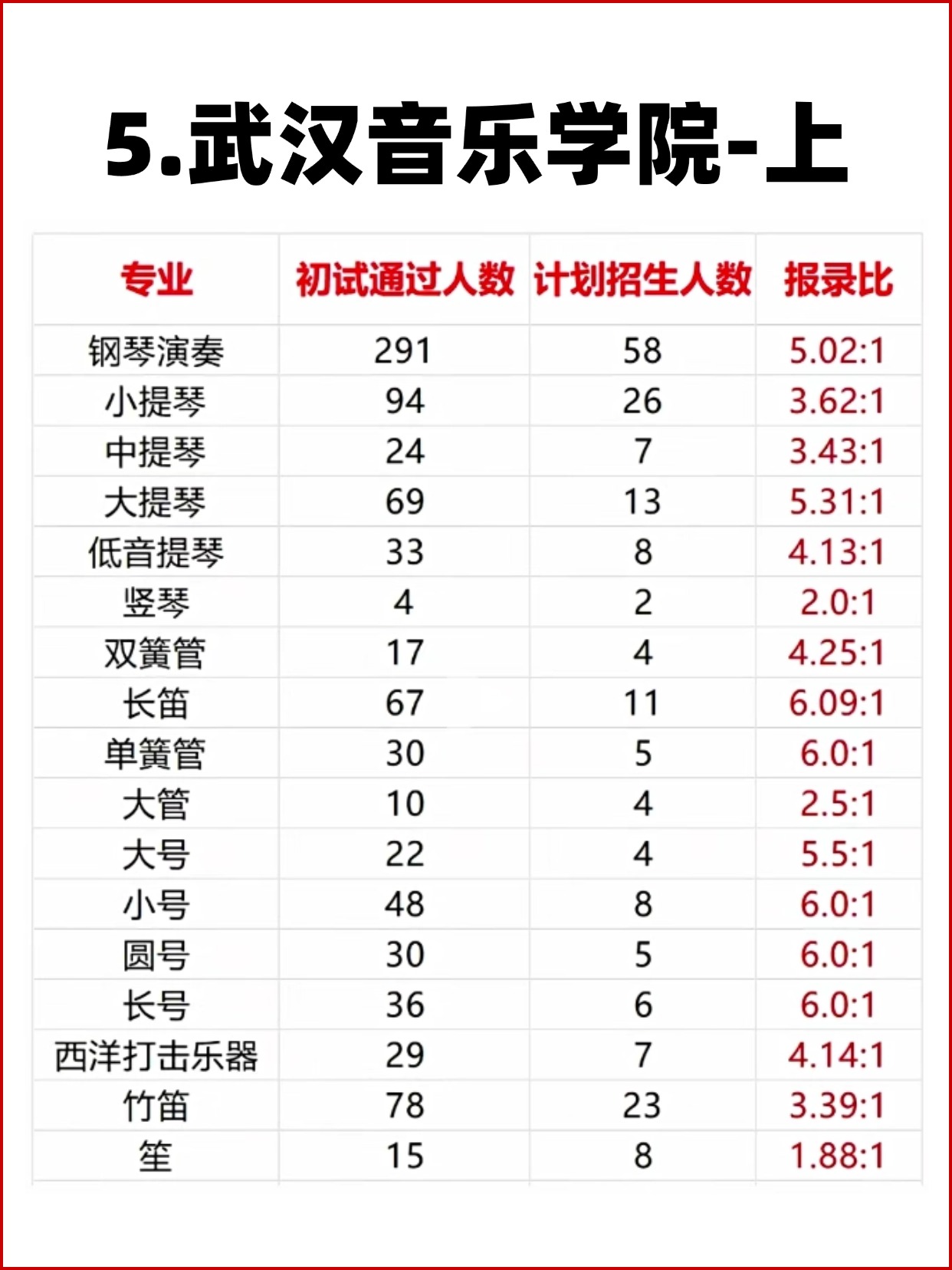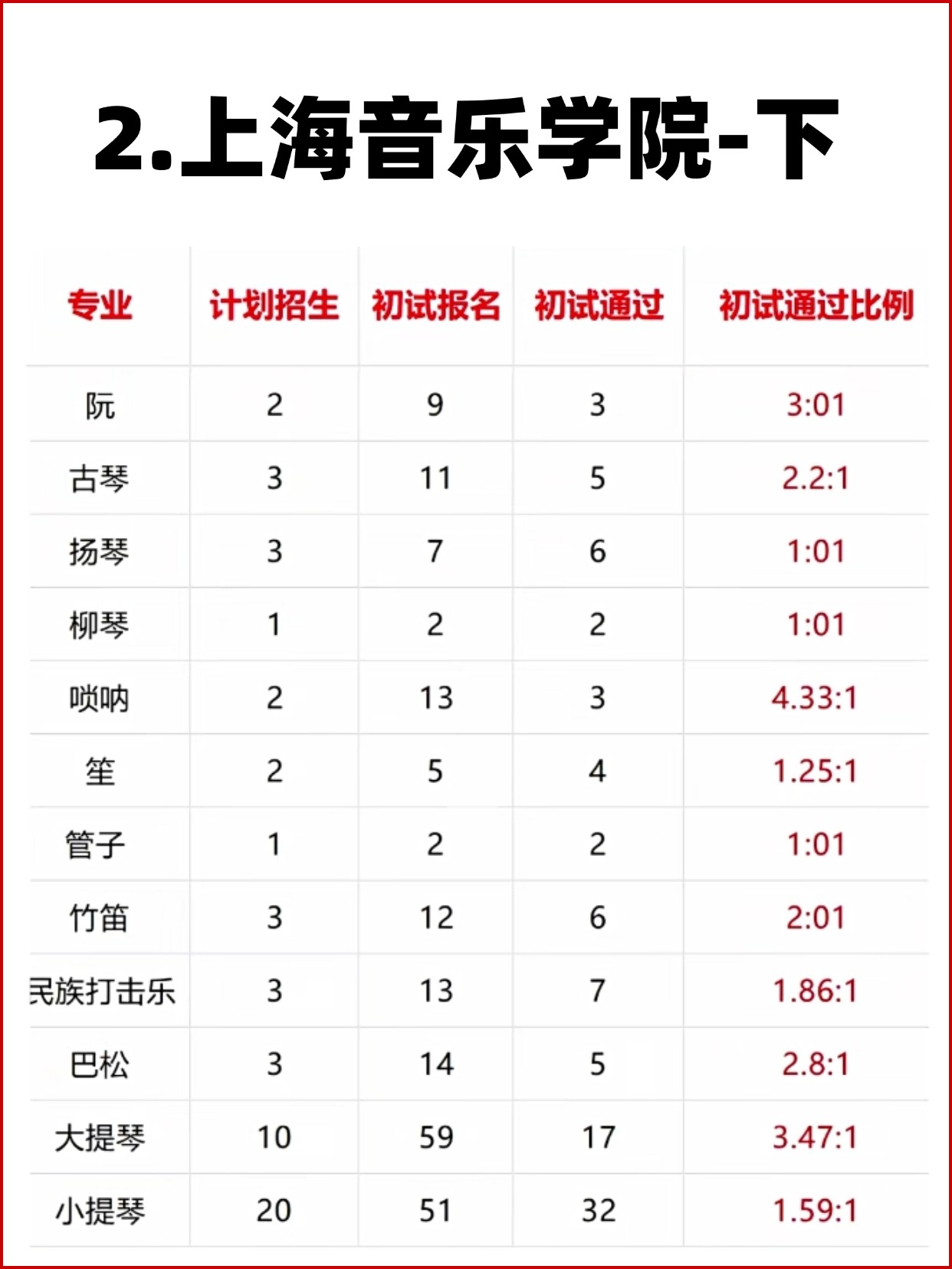 11大音乐学院各专业报录比